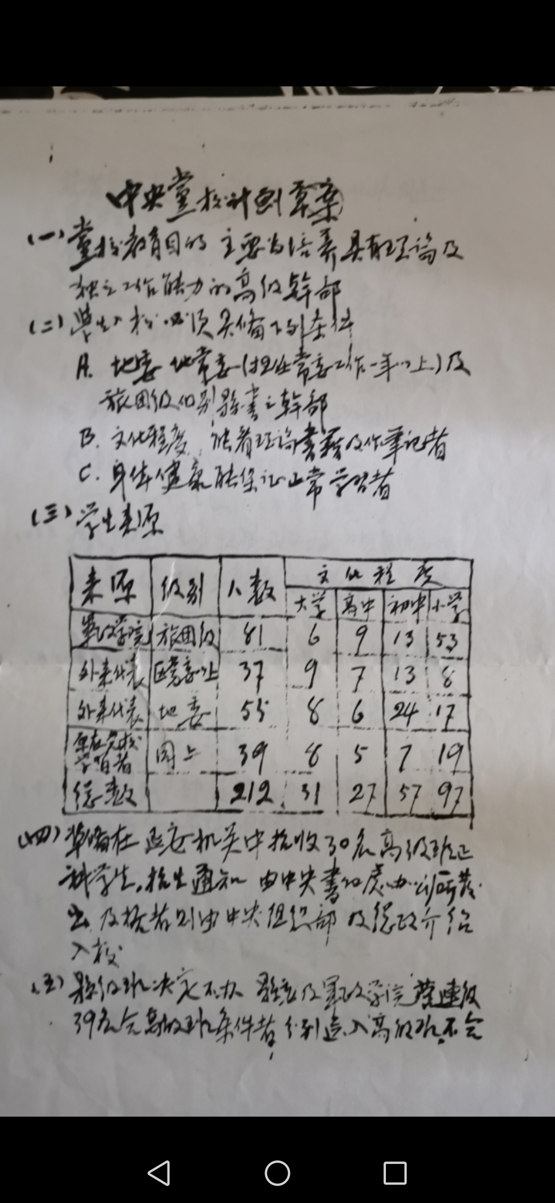 图为1942年由毛泽东、任弼时、彭真审定的中央党校计划原件影印件